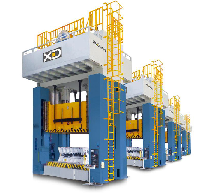 全鋼結構機身具有高的前度,剛性好,精度高,4臺或6臺連線,可用開卷、校平、送料機構及機械手來實現大型板件連續加工的生產線。具有較寬的工作臺面,為方便換模,工作臺可以移動。可對大型板料零件作落料、沖孔、彎曲、成型、校正、淺拉伸等冷沖壓工作。廣泛適用于汽車、拖拉機、農機、國防、電機制造、電器、輕工、紡織、機…